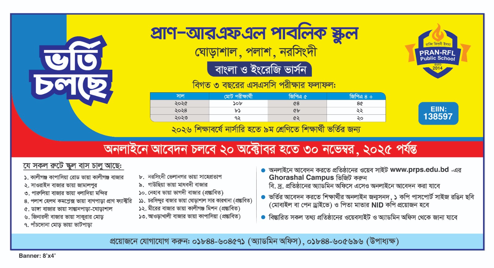PRAN-RFL Public School (PRPS) is one of the most reputed schoolsin Narsingdi. PRPS is located next to Ghorashal Bypass at Palash Upazila around50 kilometers away from the heart of the capital.